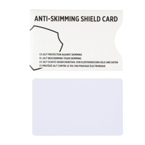 Anti-skimming RFID shield card with active jamming chip